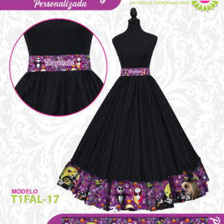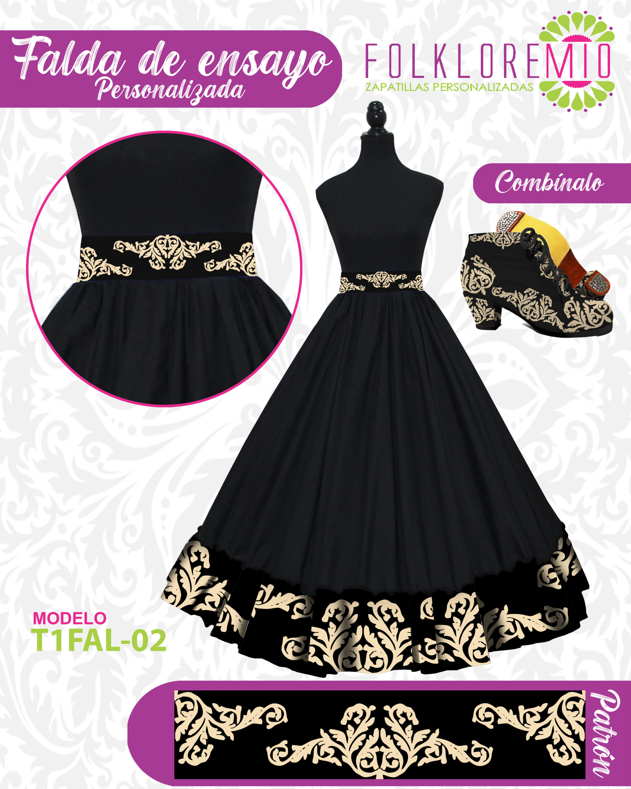 Todos nuestros diseños de calzado se pueden adaptar al diseño de la falda de ensayo. Los diseños son estampados sobre tela popelina, se fabrican de la medidas de cintura y largo que ocupe, son doble vuelo.
